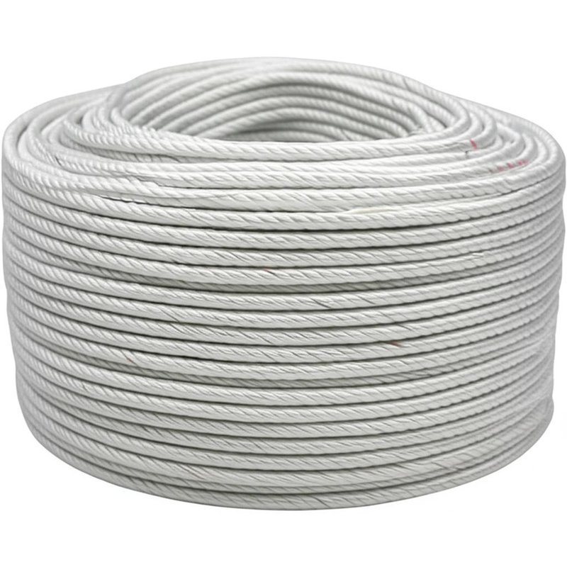 Costruzione e materiale: torsione a 3 trefoli realizzata con fibre multifilamento in polipropilene. Questa struttura è robusta, facile da giuntare e offre una buona presa.